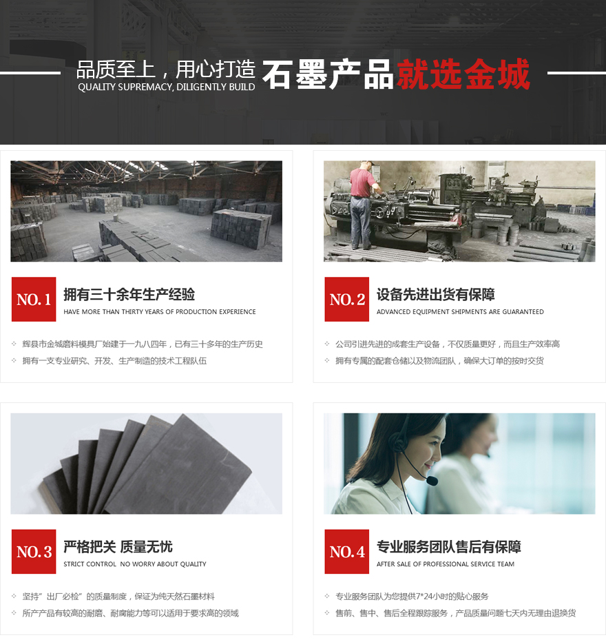 5、作铸造、翻砂、压模及高温冶金材料: 由于石墨的热膨胀系数小,而且能耐急冷急热的变化,可作为玻璃器的铸模,使用石墨后黑色金属得到铸件尺寸精确,表面光洁成品率高,不经加工或稍作加工就可使用,因而节省了大量金属。生产硬质合金等粉末冶金工艺,通常用石墨材料制成压模和烧结用的舟。单晶硅的晶体生长坩埚,区域精炼容器,支架夹具,感应加热器等都是用高纯石墨加工而成的。此外石墨还可作真空冶炼的石墨隔热板和底座,高温电阻炉炉管,棒、板、格棚等元件。